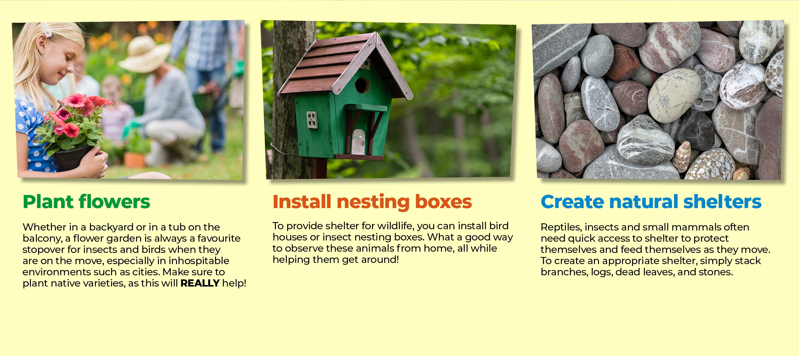 WHO IS COSMO? 1. WHAT IS BIODIVERSITY? 2. AN OVERVIEW OF LIVING BEINGS ON EARTH 3. THE IMPORTANCE OF BIODIVERSITY 4. THE EROSION OF BIODIVERSITY 5. CONNECT WITH NATURE 6. SPY ON THE FLORA AND FAUNA 7. ATTRACT POLLINATORS 8. REDUCE YOUR ENVIRONMENTAL IMPACT 9. MANAGE YOUR WASTE 10. ESTABLISH ECOLOGICAL CORRIDORS 11. PRESERVE NATIVE SPECIES 12. PROMOTE HEALTHY HABITS 13. READY FOR THE QUIZ! WHO IS COSMO? 1. WHAT IS BIODIVERSITY? 2. AN OVERVIEW OF LIVING BEINGS ON EARTH 3. THE IMPORTANCE OF BIODIVERSITY 4. THE EROSION OF BIODIVERSITY 5. CONNECT WITH NATURE 6. SPY ON THE FLORA AND FAUNA 7. ATTRACT POLLINATORS 8. REDUCE YOUR ENVIRONMENTAL IMPACT 9. MANAGE YOUR WASTE 10. ESTABLISH ECOLOGICAL CORRIDORS 11. PRESERVE NATIVE SPECIES 12. PROMOTE HEALTHY HABITS 13. READY FOR THE QUIZ! Continue: 11. PRESERVE NATIVE SPECIES
