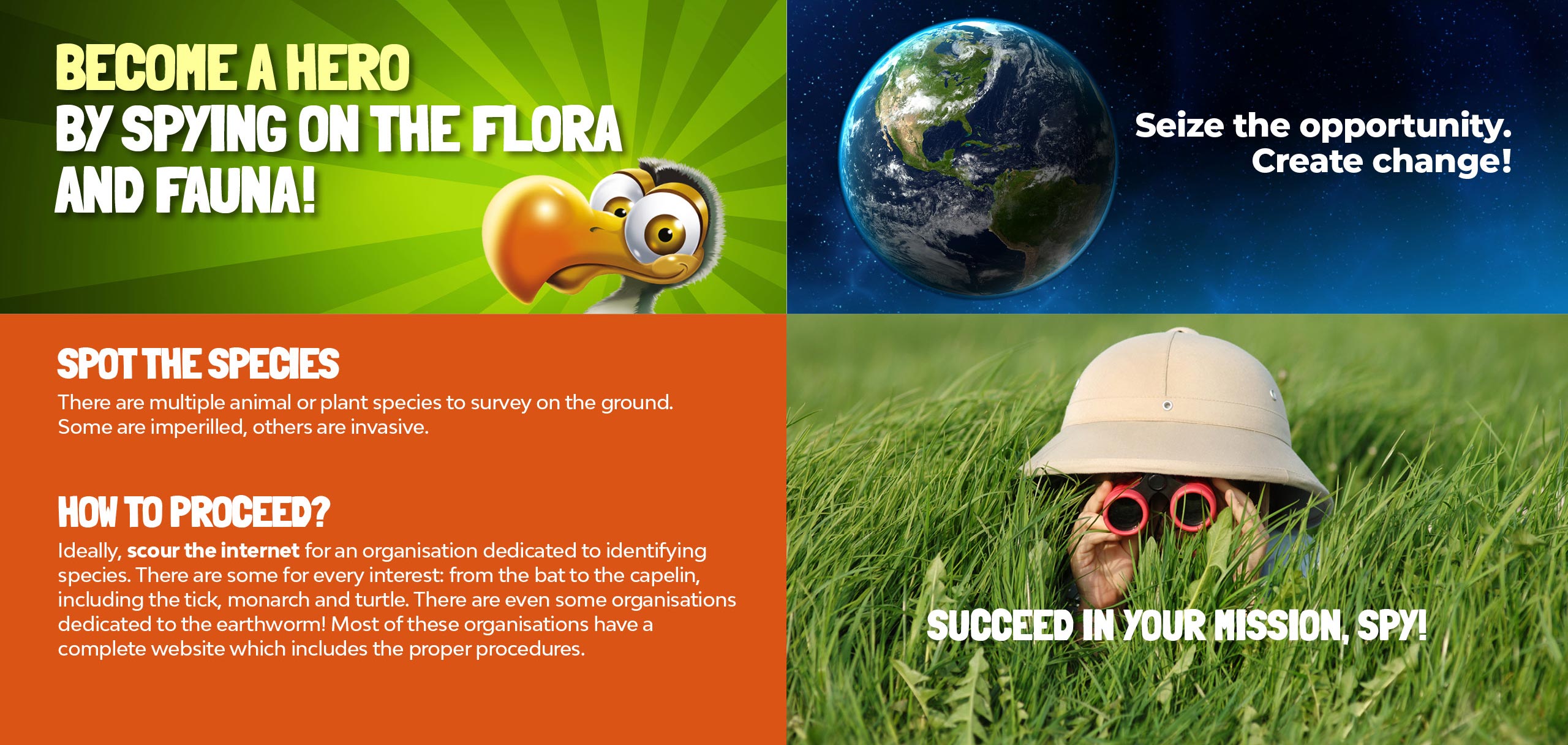 WHO IS COSMO? 1. WHAT IS BIODIVERSITY? 2. AN OVERVIEW OF LIVING BEINGS ON EARTH 3. THE IMPORTANCE OF BIODIVERSITY 4. THE EROSION OF BIODIVERSITY 5. CONNECT WITH NATURE 6. SPY ON THE FLORA AND FAUNA 7. ATTRACT POLLINATORS 8. REDUCE YOUR ENVIRONMENTAL IMPACT 9. MANAGE YOUR WASTE 10. ESTABLISH ECOLOGICAL CORRIDORS 11. PRESERVE NATIVE SPECIES 12. PROMOTE HEALTHY HABITS 13. READY FOR THE QUIZ! WHO IS COSMO? 1. WHAT IS BIODIVERSITY? 2. AN OVERVIEW OF LIVING BEINGS ON EARTH 3. THE IMPORTANCE OF BIODIVERSITY 4. THE EROSION OF BIODIVERSITY 5. CONNECT WITH NATURE 6. SPY ON THE FLORA AND FAUNA 7. ATTRACT POLLINATORS 8. REDUCE YOUR ENVIRONMENTAL IMPACT 9. MANAGE YOUR WASTE 10. ESTABLISH ECOLOGICAL CORRIDORS 11. PRESERVE NATIVE SPECIES 12. PROMOTE HEALTHY HABITS 13. READY FOR THE QUIZ! Continue: 7. ATTRACT POLLINATORS