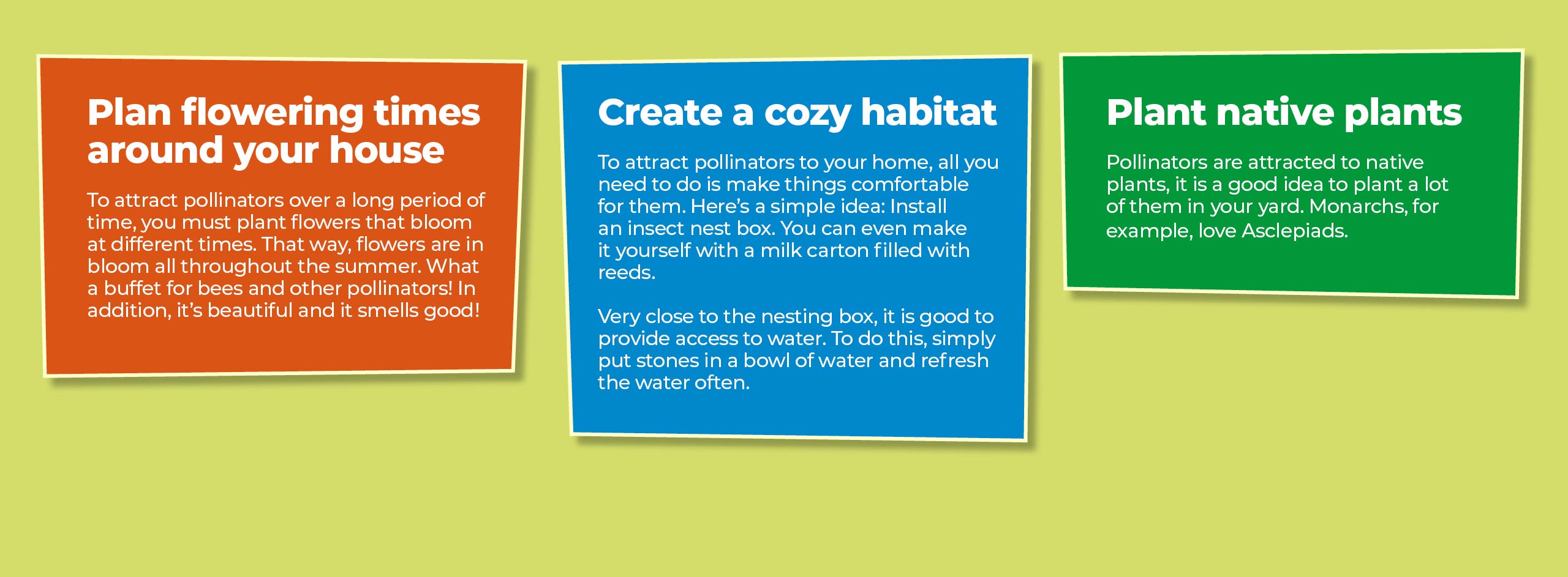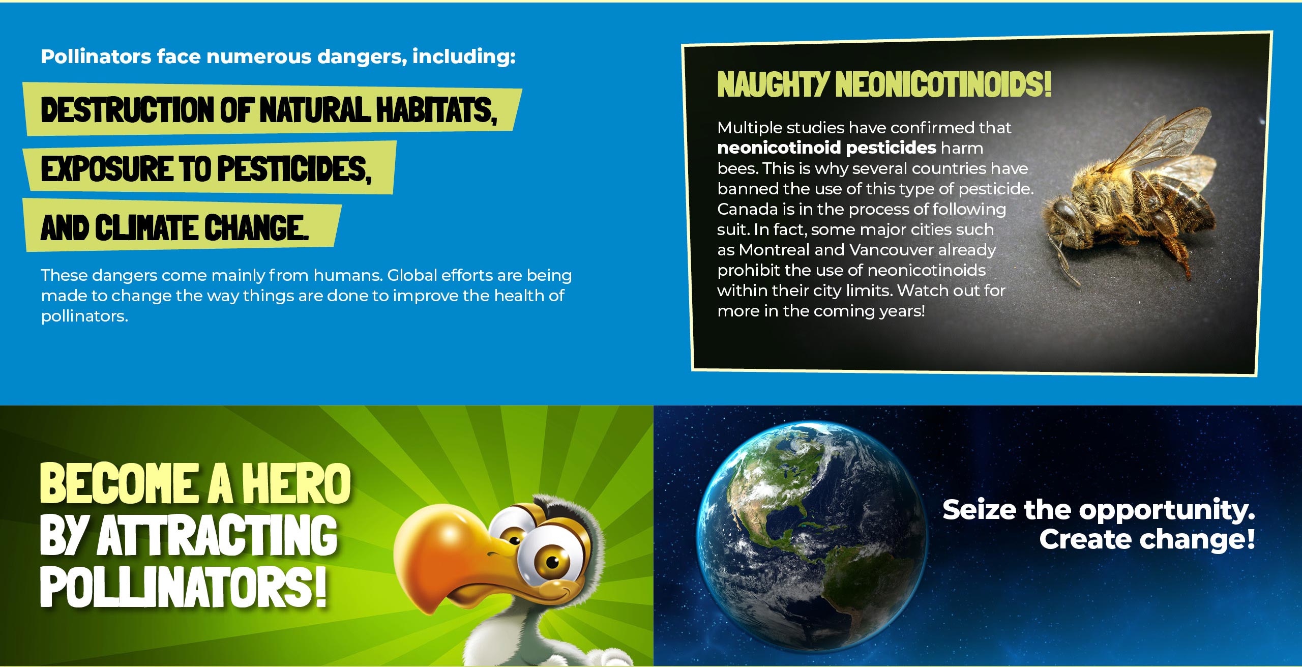 WHO IS COSMO? 1. WHAT IS BIODIVERSITY? 2. AN OVERVIEW OF LIVING BEINGS ON EARTH 3. THE IMPORTANCE OF BIODIVERSITY 4. THE EROSION OF BIODIVERSITY 5. CONNECT WITH NATURE 6. SPY ON THE FLORA AND FAUNA 7. ATTRACT POLLINATORS 8. REDUCE YOUR ENVIRONMENTAL IMPACT 9. MANAGE YOUR WASTE 10. ESTABLISH ECOLOGICAL CORRIDORS 11. PRESERVE NATIVE SPECIES 12. PROMOTE HEALTHY HABITS 13. READY FOR THE QUIZ! WHO IS COSMO? 1. WHAT IS BIODIVERSITY? 2. AN OVERVIEW OF LIVING BEINGS ON EARTH 3. THE IMPORTANCE OF BIODIVERSITY 4. THE EROSION OF BIODIVERSITY 5. CONNECT WITH NATURE 6. SPY ON THE FLORA AND FAUNA 7. ATTRACT POLLINATORS 8. REDUCE YOUR ENVIRONMENTAL IMPACT 9. MANAGE YOUR WASTE 10. ESTABLISH ECOLOGICAL CORRIDORS 11. PRESERVE NATIVE SPECIES 12. PROMOTE HEALTHY HABITS 13. READY FOR THE QUIZ! Continue: 8. REDUCE YOUR ENVIRONMENTAL IMPACT